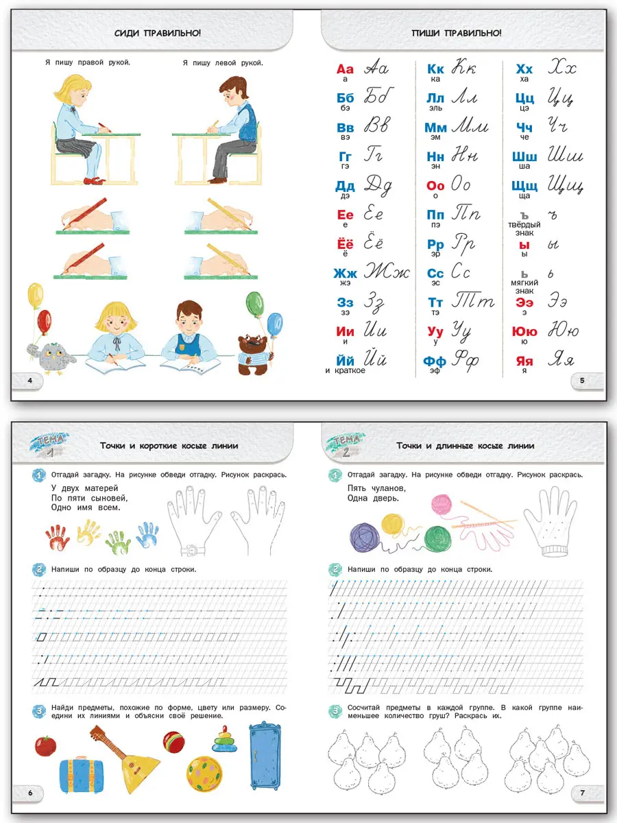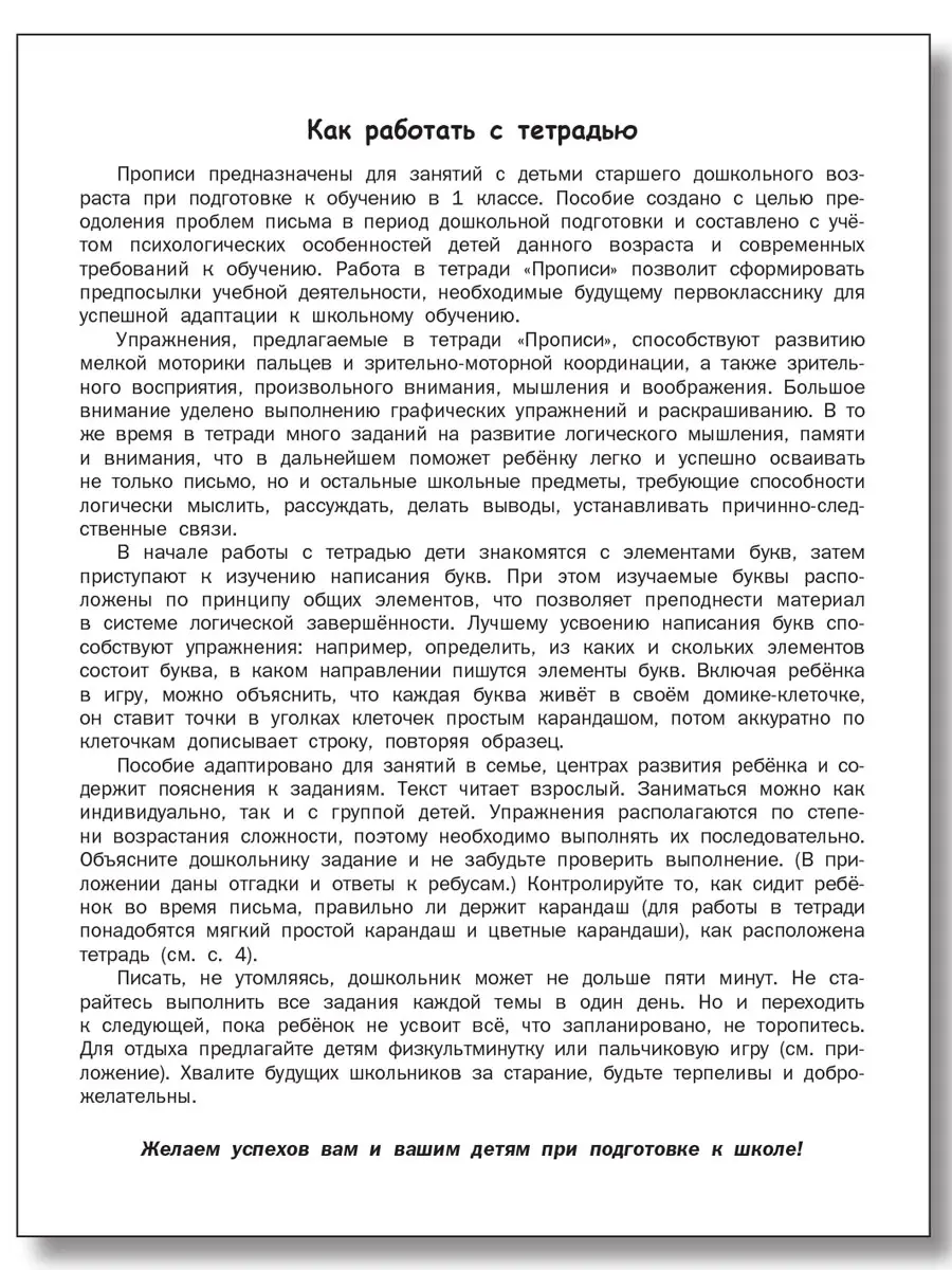 Прописи разработаны для интенсивного обучения дошкольников письму элементов букв и букв русского алфавита в период подготовки к школе.
