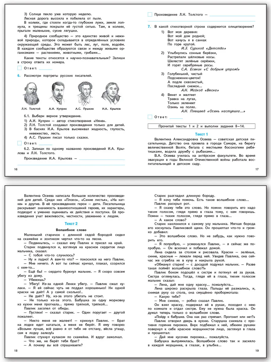 В издании представлены задания для подготовки учащихся 4 классов общеобразовательных организаций к участию во Всероссийских проверочных работах (ВПР) по предмету «Литературное чтение». Сборник содержит 7 вариантов работы, в каждом из которых 14 заданий. Составлен в соответствии с требованиями действующего ФГОС НОО и с учётом требований к уровню подготовки учащихся начальной школы. Приведён образец выполнения проверочной работы. В конце издания даны ответы к заданиям. Пособие предназначено для учителей начальных классов, методистов, заместителей директоров по учебной работе, использующих тесты для подготовки к ВПР за курс начальной школы, а также школьников и их родителей.