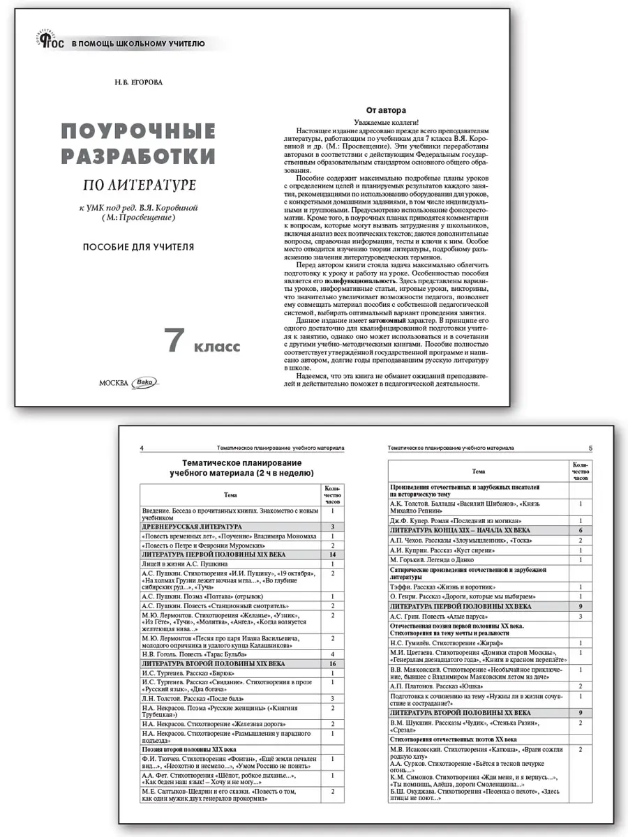 Поурочные методические разработки составлены по учебнику В.Я. Коровиной и др. «Литература. 7 класс» (М.: Просвещение), входящему в действующий федеральный перечень учебников (приказ Минпросвещения России от 21.09.2022 № 858). Материал соответствует требованиям действующих ФГОС и ФОП ООО (приказ Минпросвещения России от 18.05.2023 № 370). В пособии педагог найдёт всё, что необходимо для качественной подготовки к уроку и его проведения: тематическое планирование учебного материала, подробные сценарии уроков с комментариями к вопросам и заданиям учебника, тесты, рекомендации по подготовке к сочинениям. Издание адресовано учителям-словесникам, студентам педагогических вузов и колледжей. Подходит к учебникам «Литература» в составе УМК В.Я. Коровиной, В.П. Журавлёва, В.И. Коровина, выпущенным с 2023 г. по н. в.