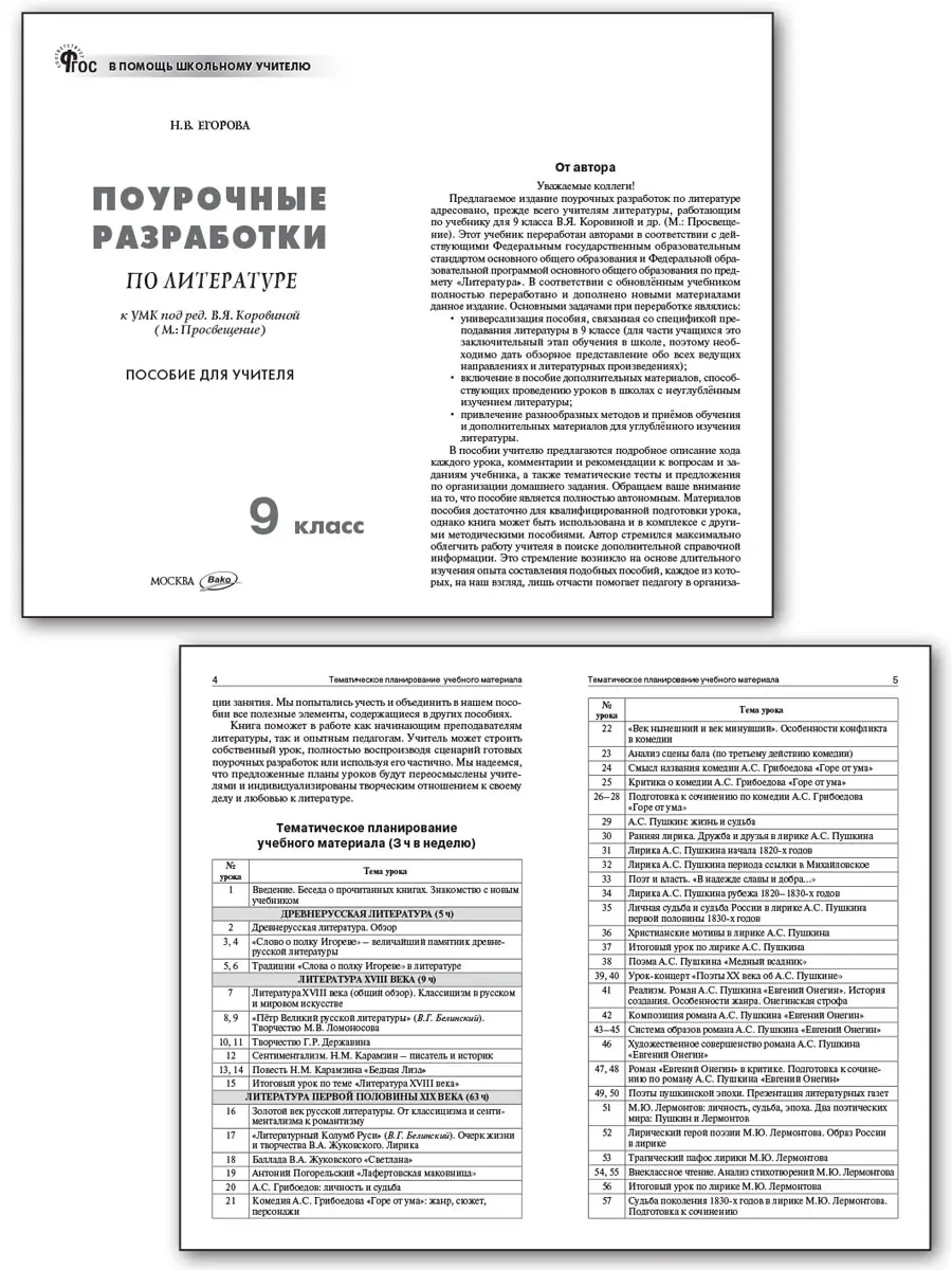 Поурочные методические разработки составлены по учебнику В.Я. Коровиной и др. «Литература. 9 класс» (М.: Просвещение), входящему в действующий федеральный перечень учебников (приказ Минпросвещения России от 21.09.2022 № 858). Материал соответствует требованиям действующих ФГОС и ФОП ООО (приказ Минпросвещения России от 18.05.2023 № 370). В пособии педагог найдёт всё, что необходимо для качественной подготовки к уроку и его проведения: тематическое планирование учебного материала, подробные сценарии уроков с комментариями к вопросам и заданиям учебника, тесты, рекомендации по подготовке к сочинениям. Издание адресовано учителям-словесникам, студентам педагогических вузов и колледжей.