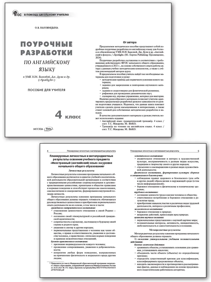 Поурочные методические разработки составлены по учебнику Н.И. Быковой, Дж. Дули и др. «Английский в фокусе» / «Spotlight» (М.: Express Publishing: Просвещение), входящему в действующий федеральный перечень учебников (приказ Минпросвещения России от 21.09.2022 № 858). Материал соответствует требованиям действующих ФГОС и ФОП НОО (приказ Минпросвещения России от 18.05.2023 № 372). Учитель найдёт здесь всё необходимое для подготовки к занятиям: тематическое планирование учебного материала, подробные сценарии уроков, методические рекомендации по организации работы учащихся, дополнительные задания, скороговорки, рифмовки, сценарии игр и многое другое. Издание адресовано преподавателям английского языка, студентам педагогических вузов и колледжей. Подходит к учебникам «Английский язык» в составе УМК Н.И. Быковой, Дж. Дули, М.Д. Поспеловой и др., выпущенным с 2023 г. по н. в.
