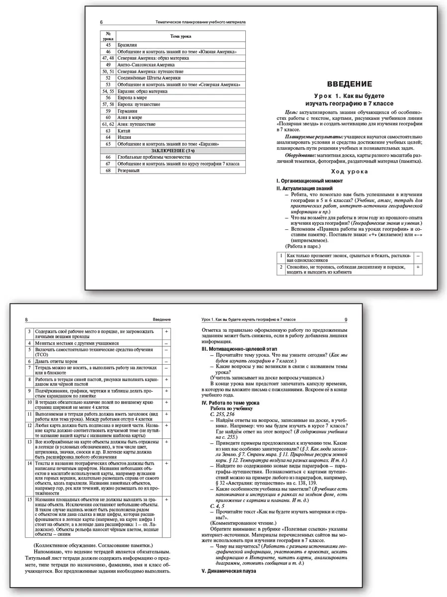 Поурочные методические разработки составлены по учебнику А.И. Алексеева и др. (М.: Просвещение), входящему в действующий федеральный перечень учебников (приказ Минпросвещения РФ от 05.11.2024 № 769). Материал соответствует требованиям действующих ФГОС и ФОП ООО. Предложены тематическое планирование курса, сценарии уроков, дополнительный материал, вопросы и задания для работы в группах, темы для дискуссий, тесты для контроля знаний учащихся. Издание будет полезно как начинающим педагогам, так и преподавателям со стажем. Подходит к учебникам "География" в составе УМК А.И. Алексеева и др., выпущенным с 2022 г. по н. в.