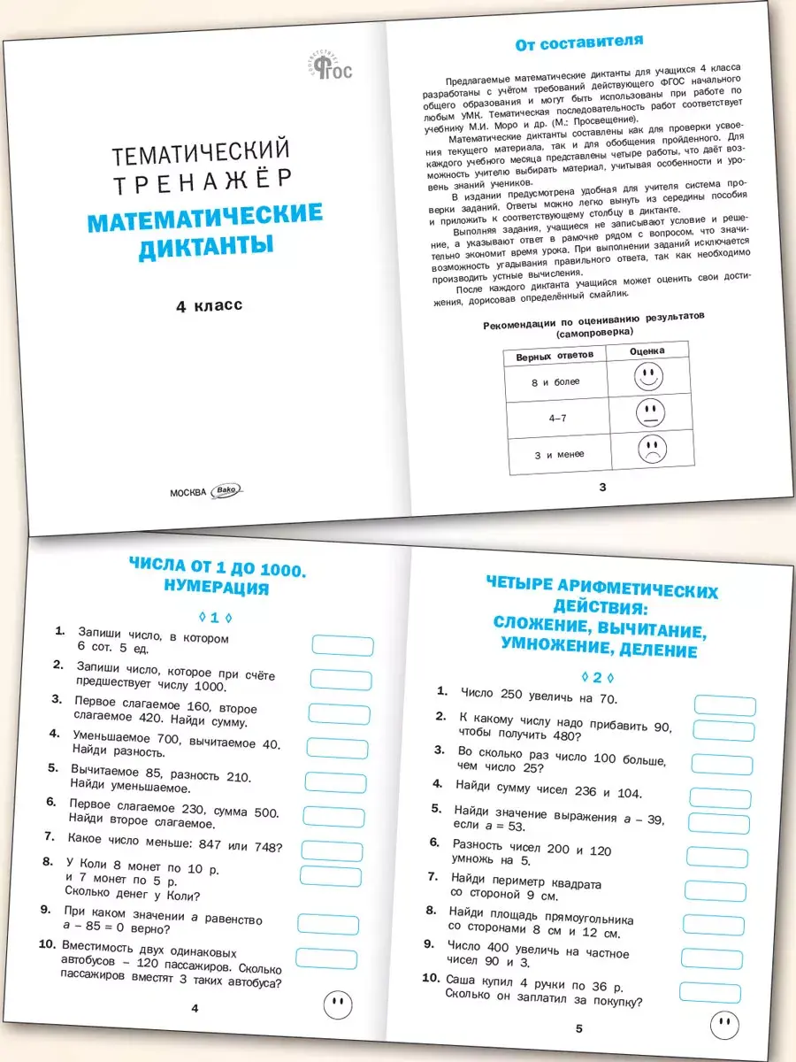 Математика. 4 класс. Математические диктанты. Тематический тренажер. ФГОС. Новый