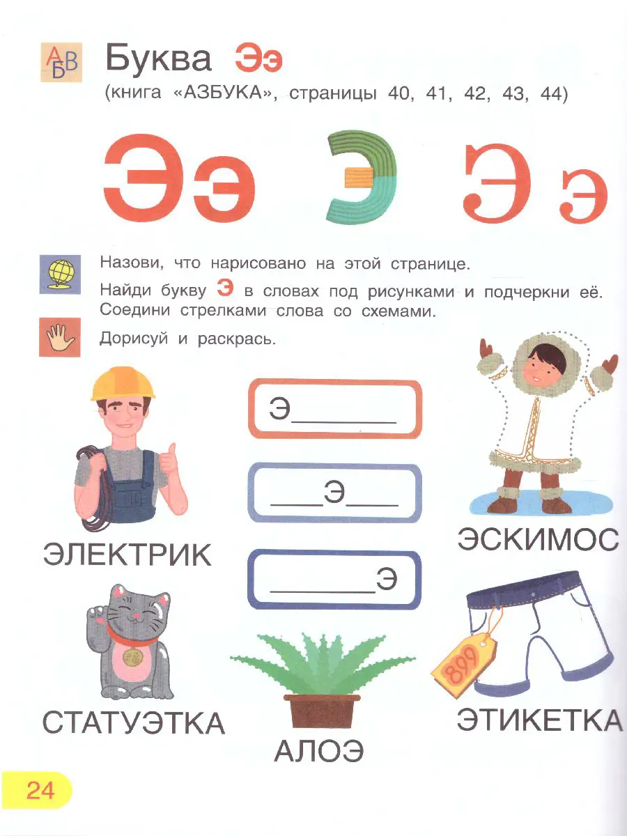 В этом пособии повторяем буквы, узнаём новое о мире, расширяем словарный запас, раскрашиваем, дорисовываем, слушаем сказки.