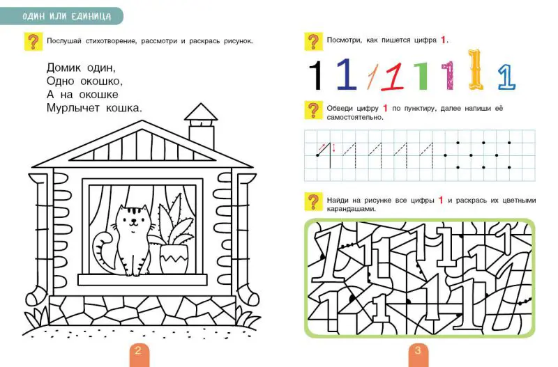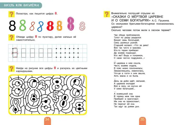 В этой тетради знакомимся с цифрами, их правильным написанием, для каждой цифры – стихотворение, сказка, забавная история, раскраски, задания на развитие внимания и логического мышления.