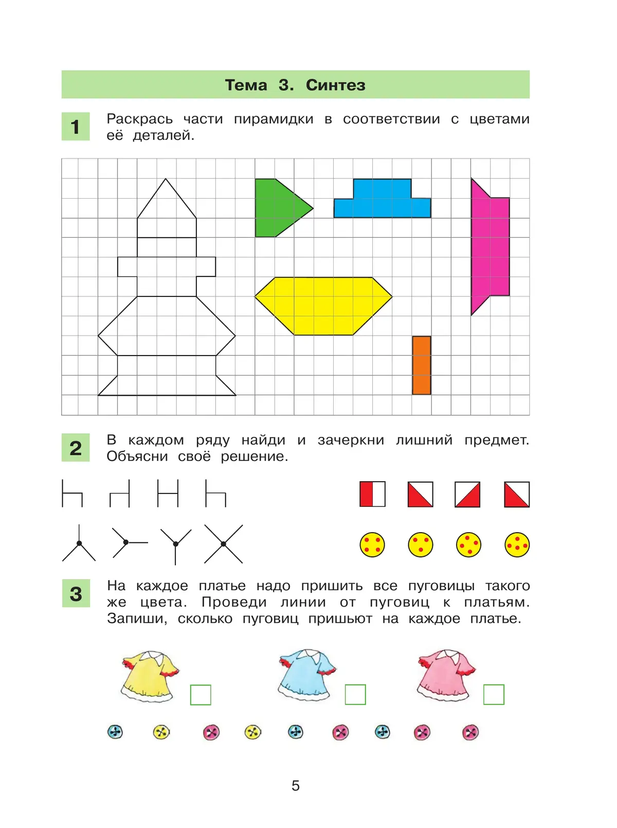 Рабочая тетрадь предназначена для детей 6—7 лет. В книгу включены упражнения по формированию и развитию приёмов логических умственных действий (анализ, синтез, сравнение, обобщение, сериация, классификация, абстрагирование, моделирование, аналогия).