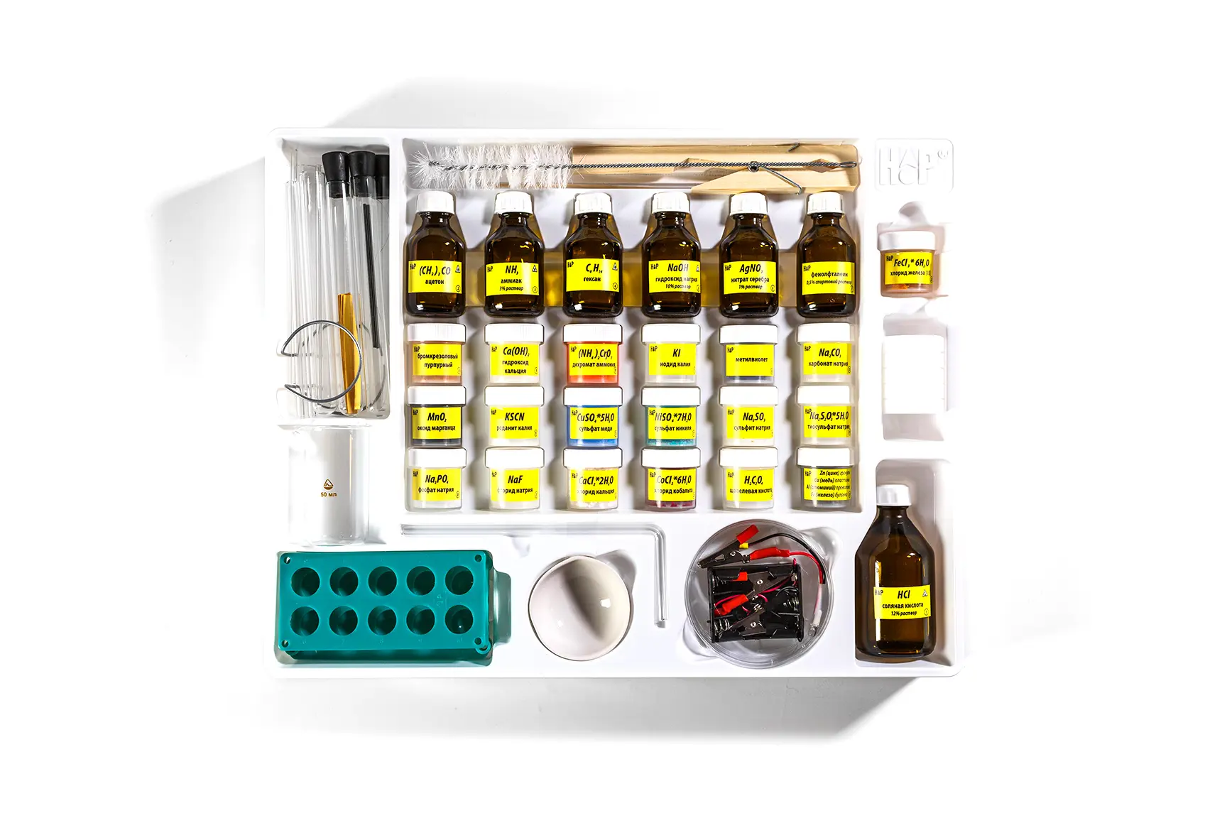 Мини-лаборатория охватывает все базовые разделы химии. Эксперименты соответствуют школьной программе (!).