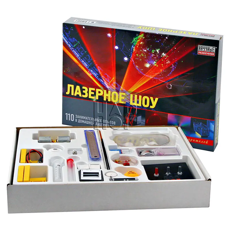 Набор «Лазерное шоу» позволяет проследить тысячелетнюю историю эволюции представлений человека о природе света. Все, кто интересуется исследованиями световых эффектов, смогут провести более 100 различных экспериментов.