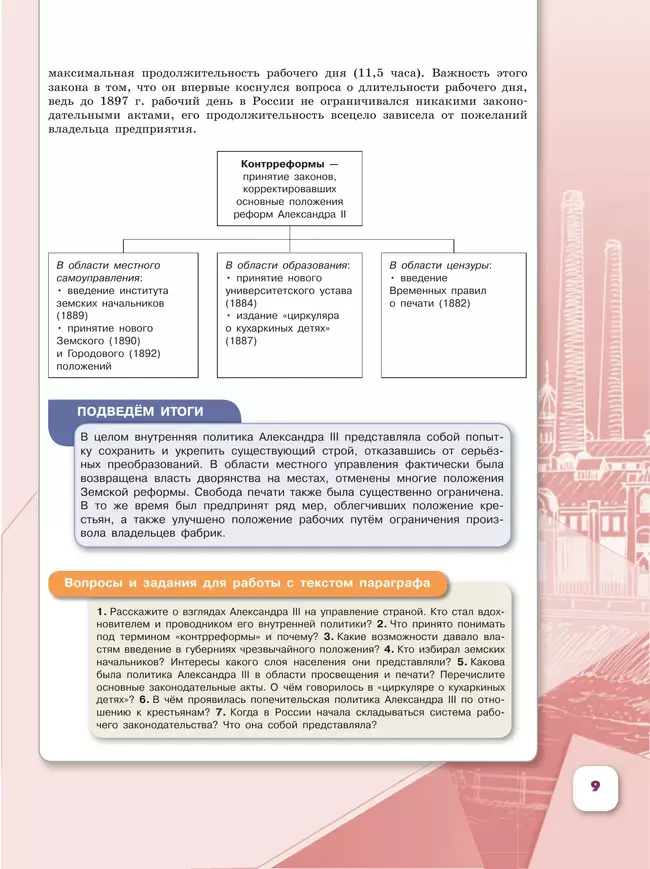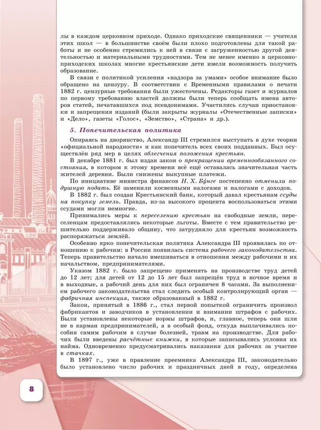 В учебнике освещаются ключевые вопросы и основные события истории России XIX — начала XX в. Методический аппарат учебника направлен на формирование у школьников универсальных учебных действий. Этому способствуют разноуровневые вопросы и задания, отрывки из исторических источников, темы для проектов, творческих работ и др.