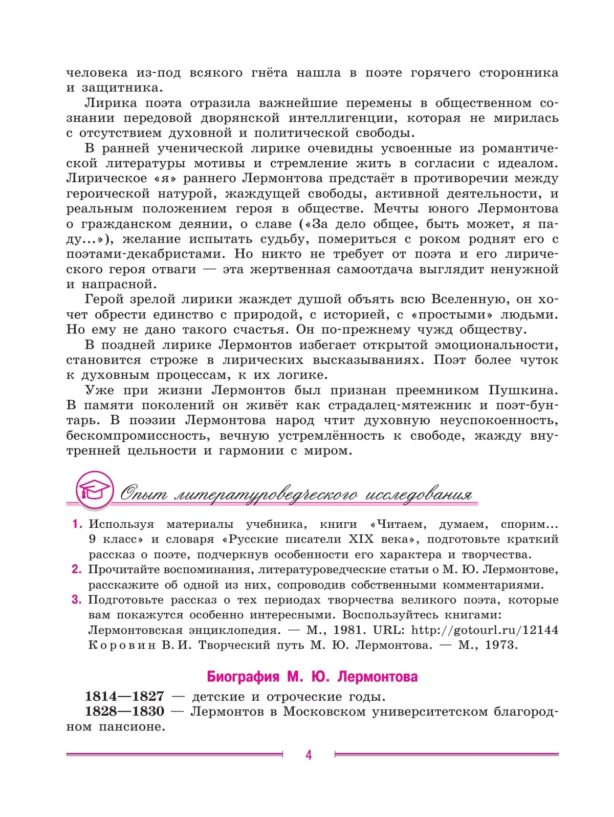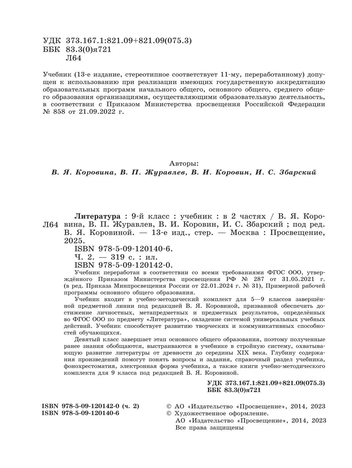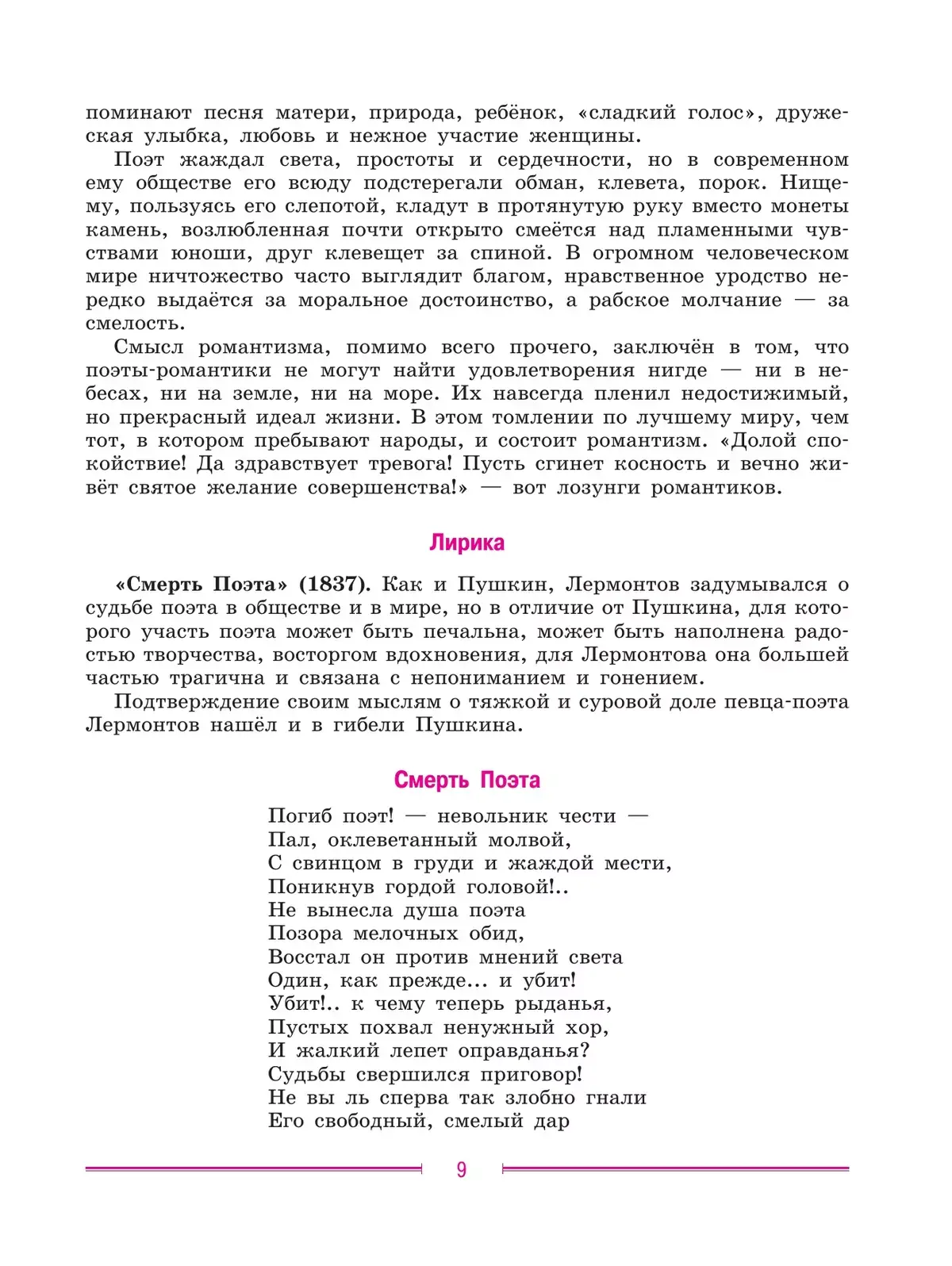 Учебник способствует развитию творческих и коммуникативных способностей обучающихся. Девятый класс завершает этап основного общего образования, поэтому полученные ранее знания обобщаются, выстраиваются в учебнике в стройную систему, охватывающую развитие литературы от древности до середины XIX века.