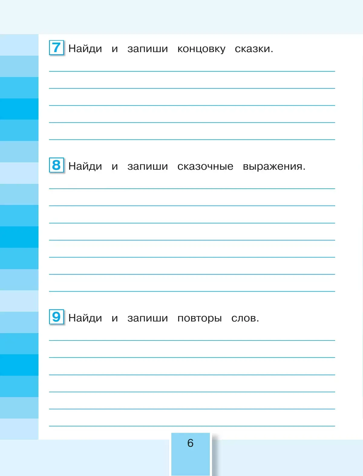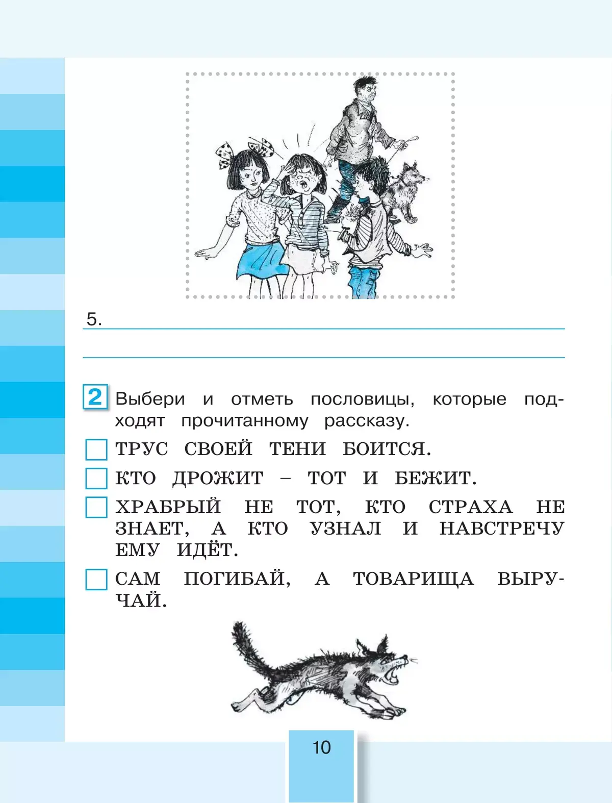Рабочие тетради содержат дополнительные материалы по каждой теме учебника. В тетрадях дети выполняют задания, требующие практических действий, в процессе которых они совершенствуют свои читательские умения, навыки работы с литературными произведениями, творческие способности.
