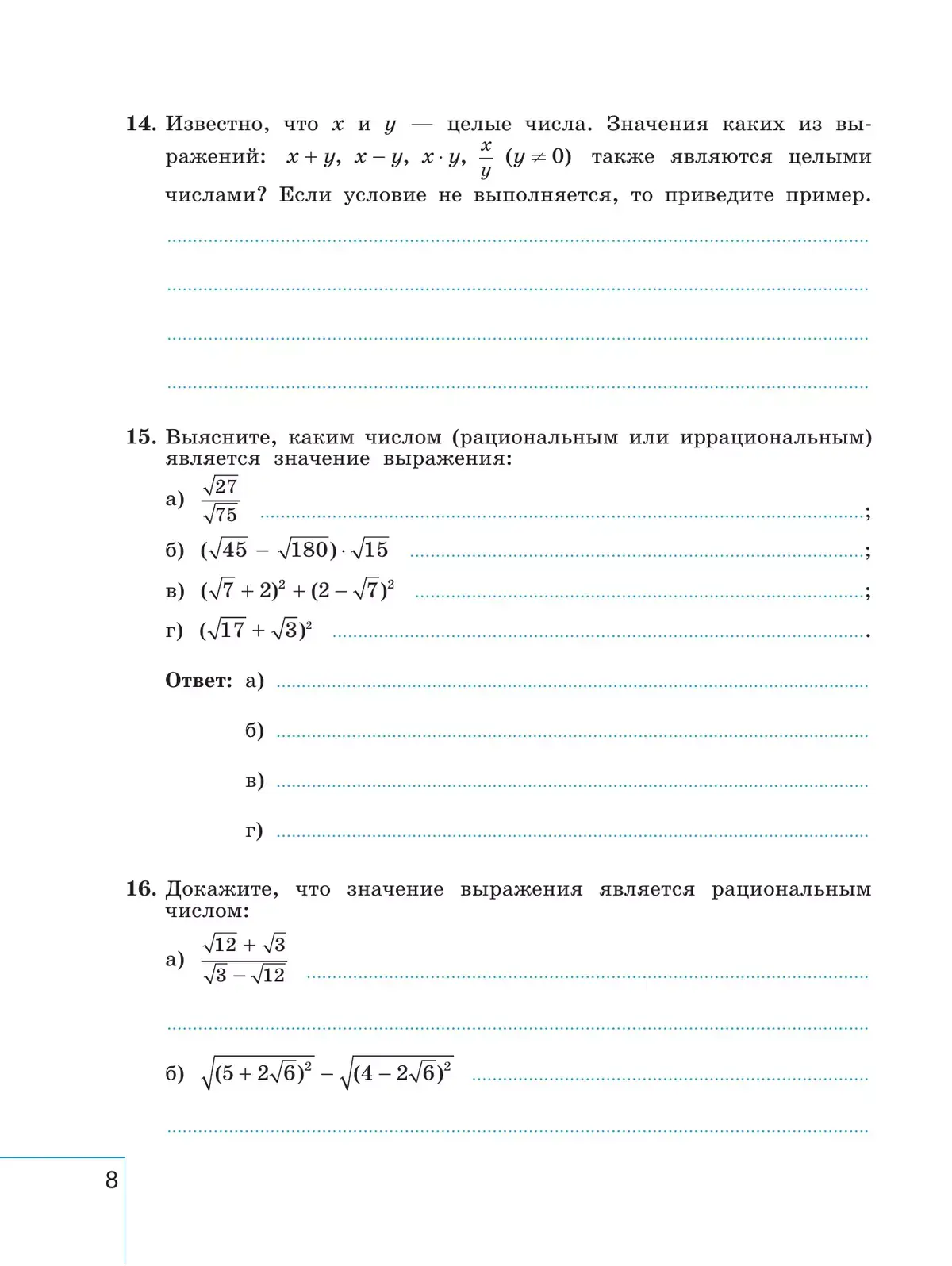 Рабочая тетрадь включает задания двух уровней сложности ко всем основным пунктам учебника, а также задания для повторения ключевых разделов курса алгебры 7—9 классов.