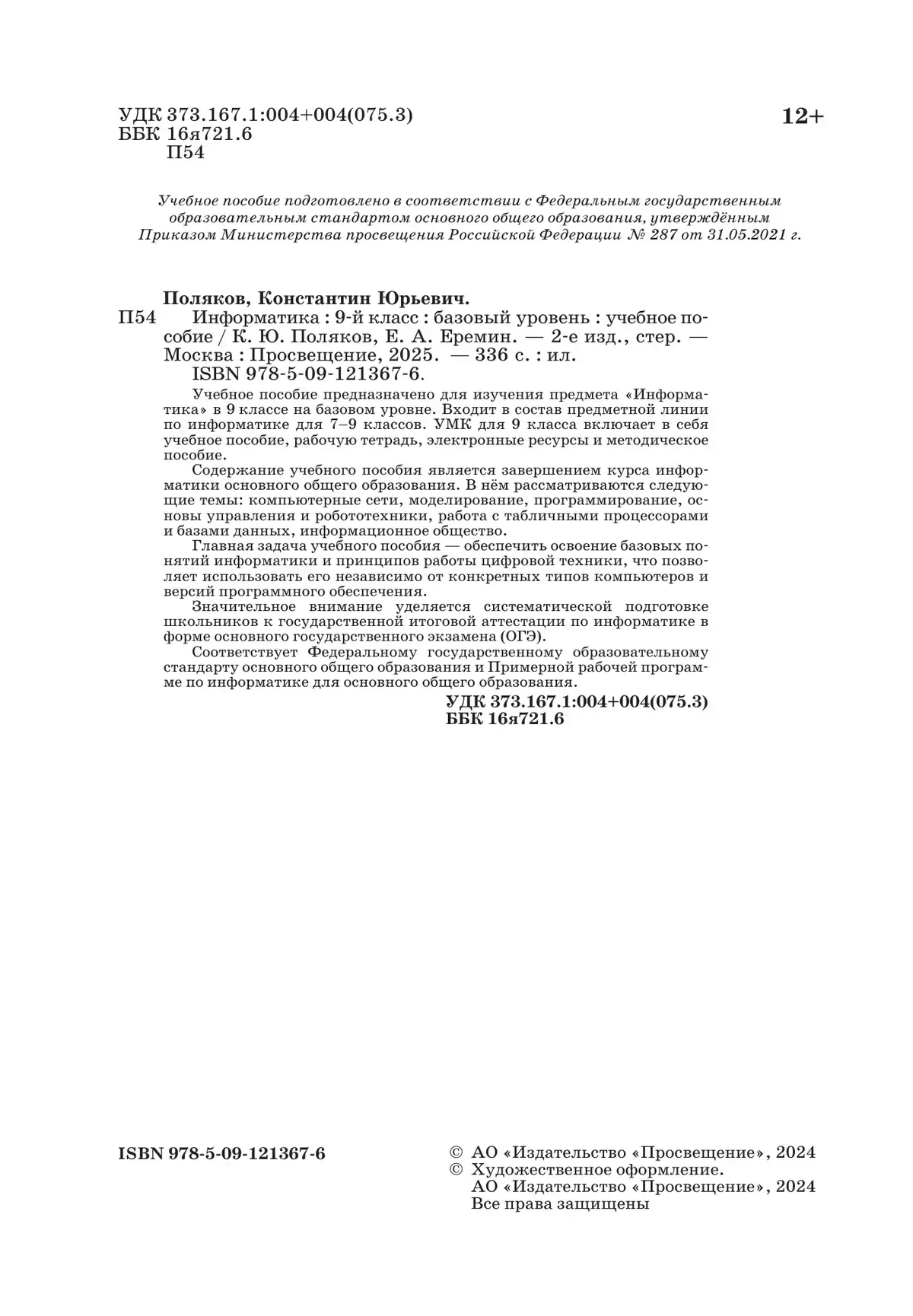 Учебное пособие предназначено для изучения предмета «Информатика» в 9 классе на базовом уровне. Входит в состав предметной линии по информатике для 7–9 классов. УМК для 9 класса включает в себя учебное пособие, рабочую тетрадь, электронные ресурсы и методическое пособие.