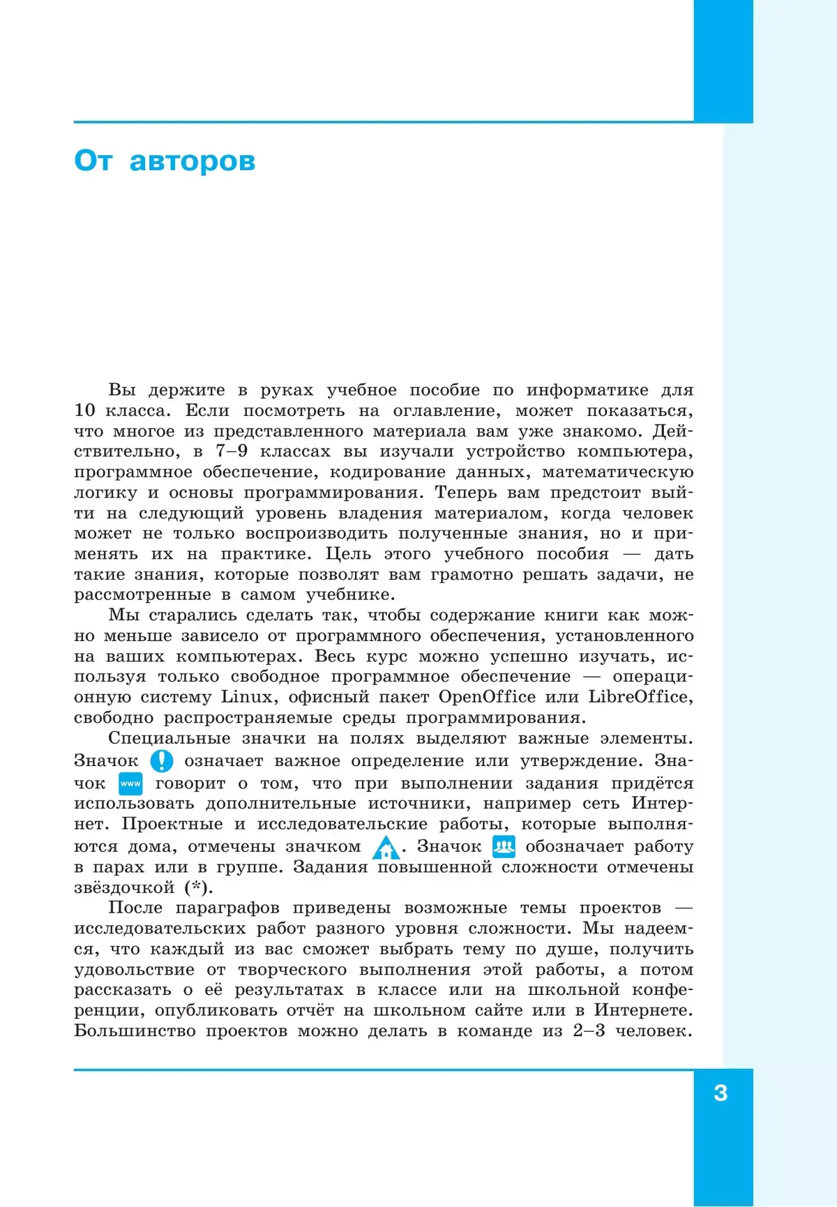 Учебное пособие предназначено для изучения информатики на углублённом уровне в 10 классах общеобразовательных организаций. Содержание опирается на изученный в 7–9 классах курс информатики для основной школы.