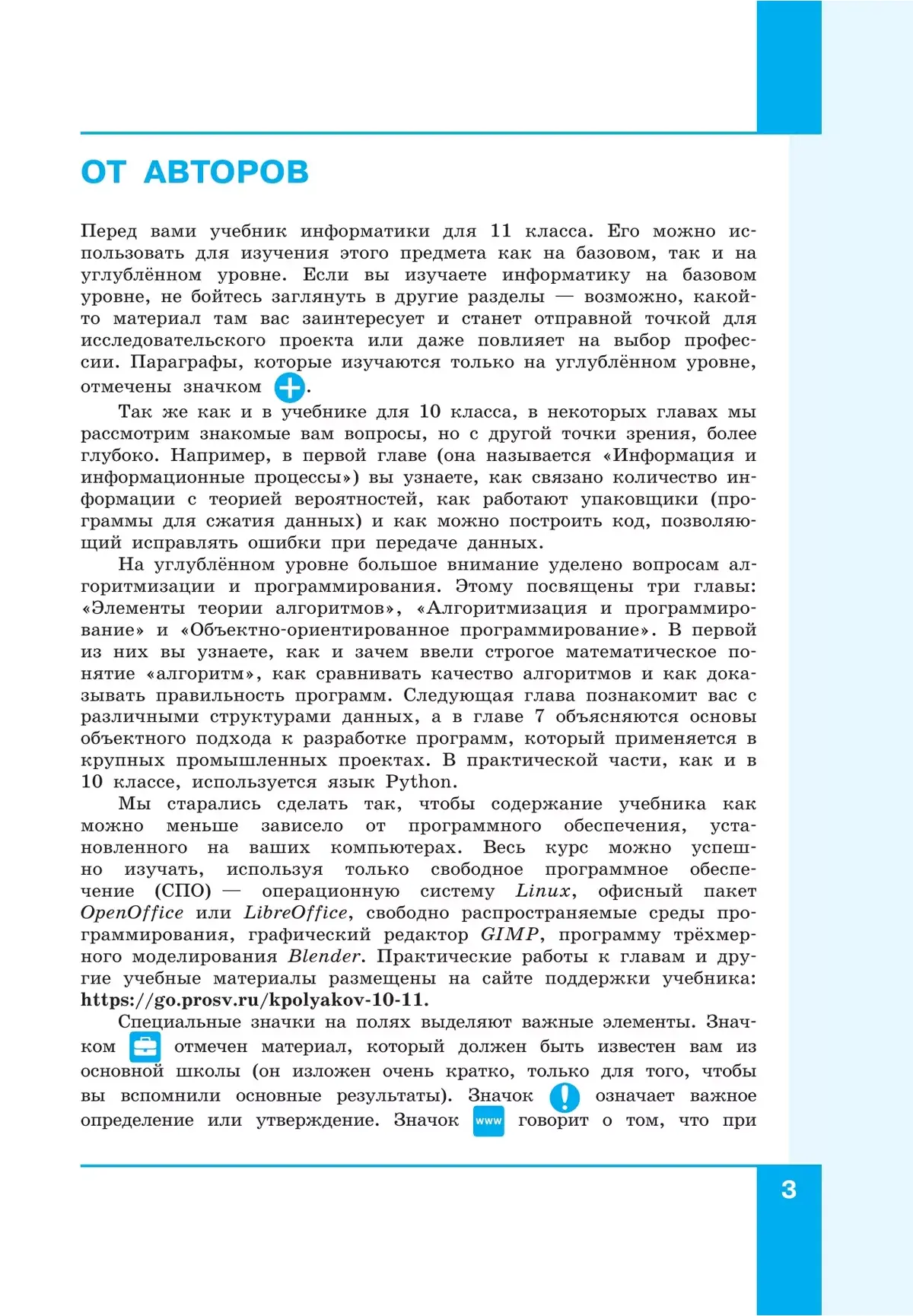 Учебник соответсвует ФГОС 2021 г. Учебник предназначен для изучения информатики на базовом и углублённом уровнях в 11 классах общеобразовательных организаций. Содержание учебника является продолжением курса 10 класса и опирается на изученный в 7–9 классах курс информатики для основной школы.