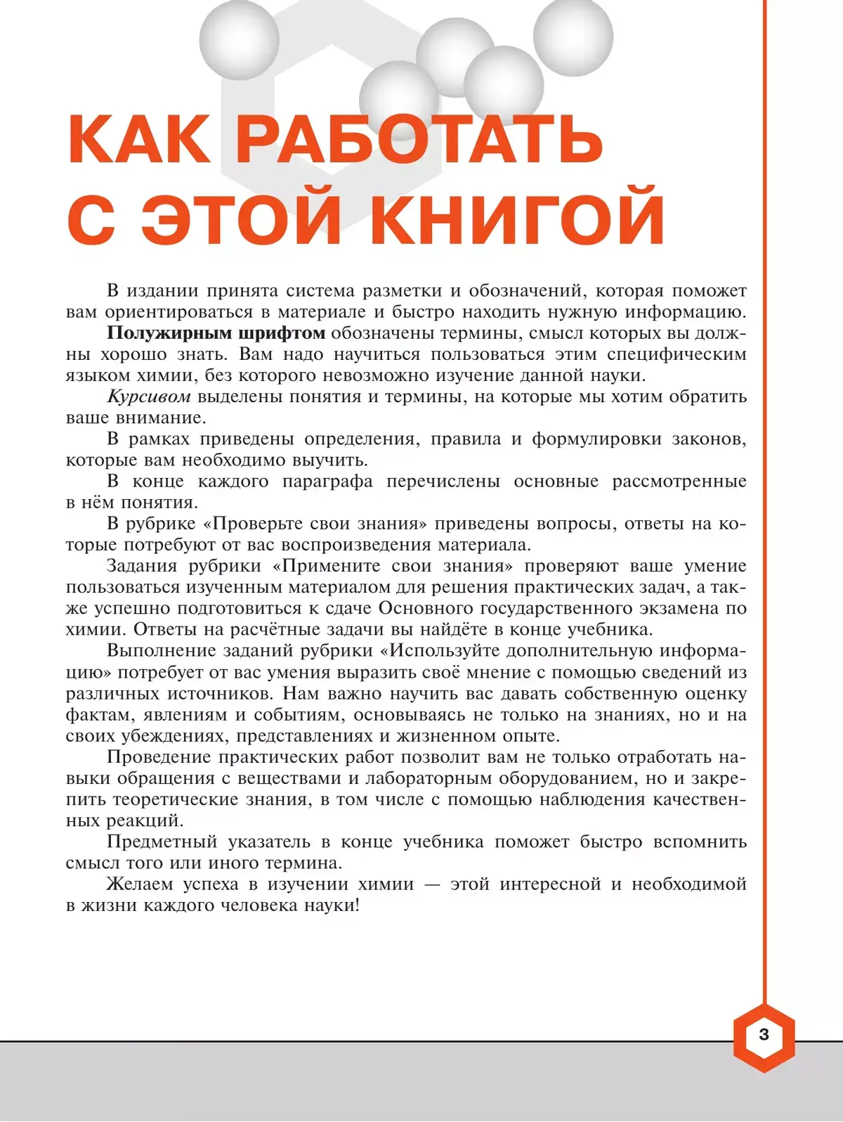 Усвоению материала способствуют практическая направленность, схемы и иллюстрации, составляющие неотъемлемую часть авторской методики. В комплекте с учебником разработан сборник задач и упражнений "Химия. 8—9 классы. Углублённый уровень" авторов В. В. Червиной, А. В. Варламовой, Т. В. Хасяновой, который позволяет дополнить и расширить материал учебника.
