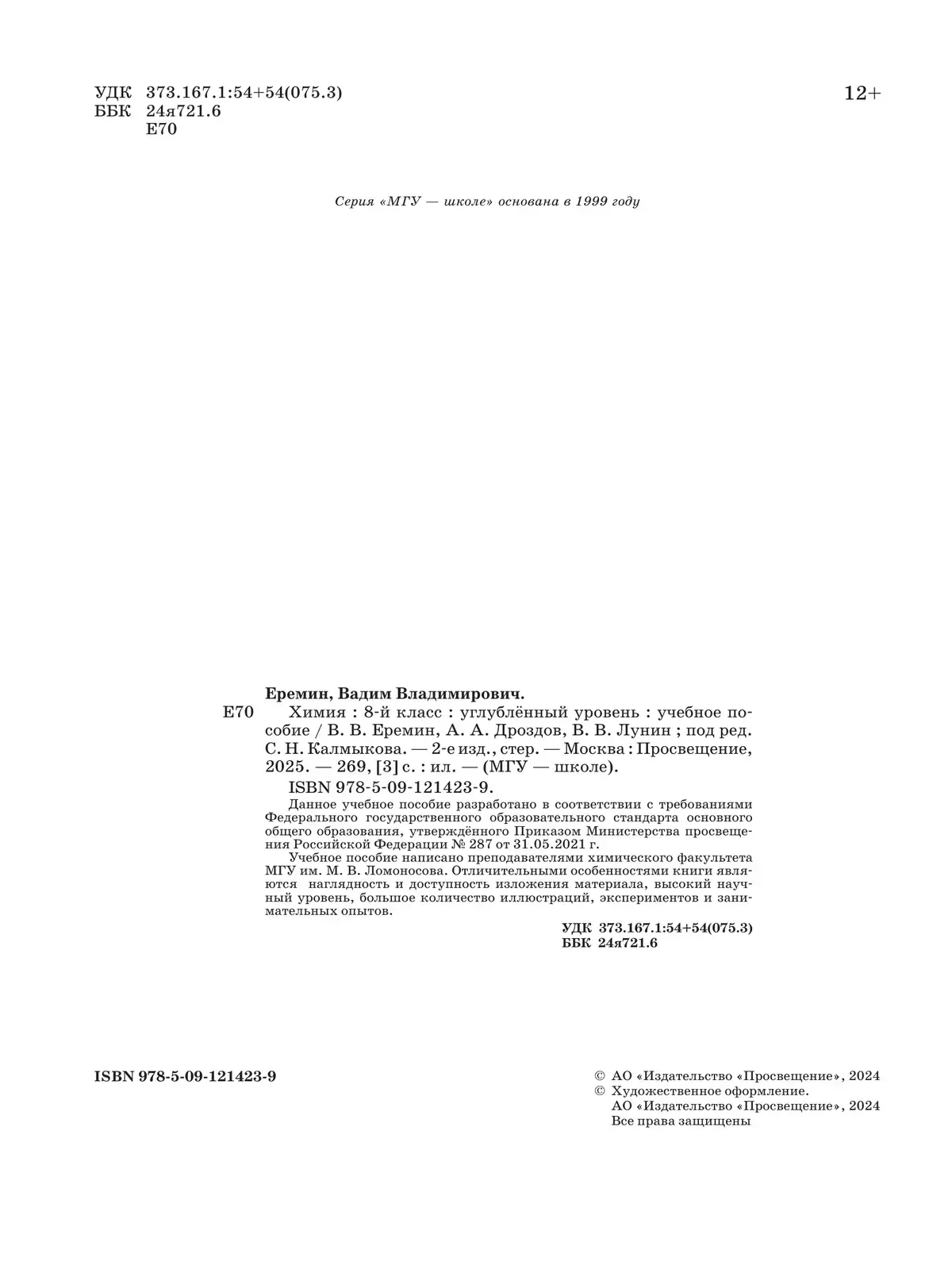 Учебное пособие разработано в соответствии с требованиями ФГОС основного общего образования, утверждённого Приказом Министерства просвещения Российской Федерации №287 от 31.05.2021 г. Книга написана преподавателями химического факультета МГУ им.М.В.Ломоносова.