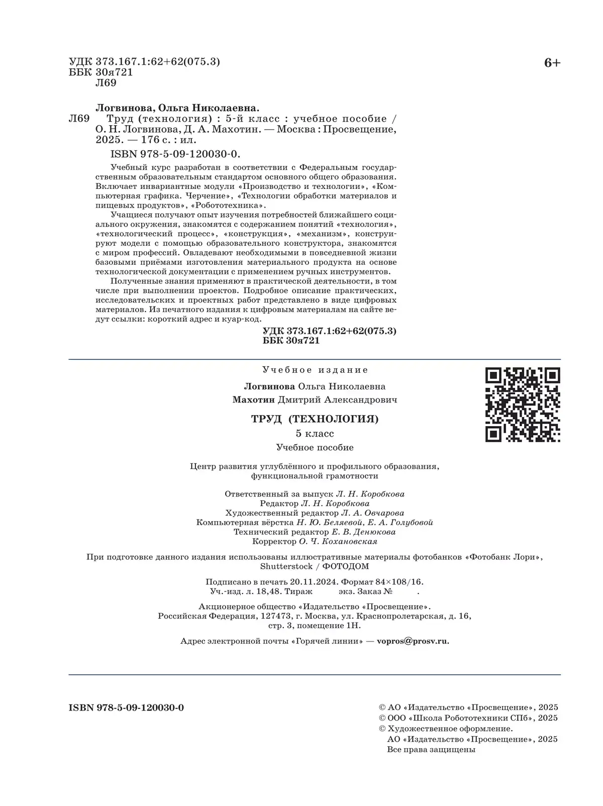 Учебное пособие разработано ведущими экспертами по технологии при участии российских производителей робототехнического оборудования. Пособие полностью раскрывает все темы обновленной ФОП ООО по предмету «Труд (технология)».
