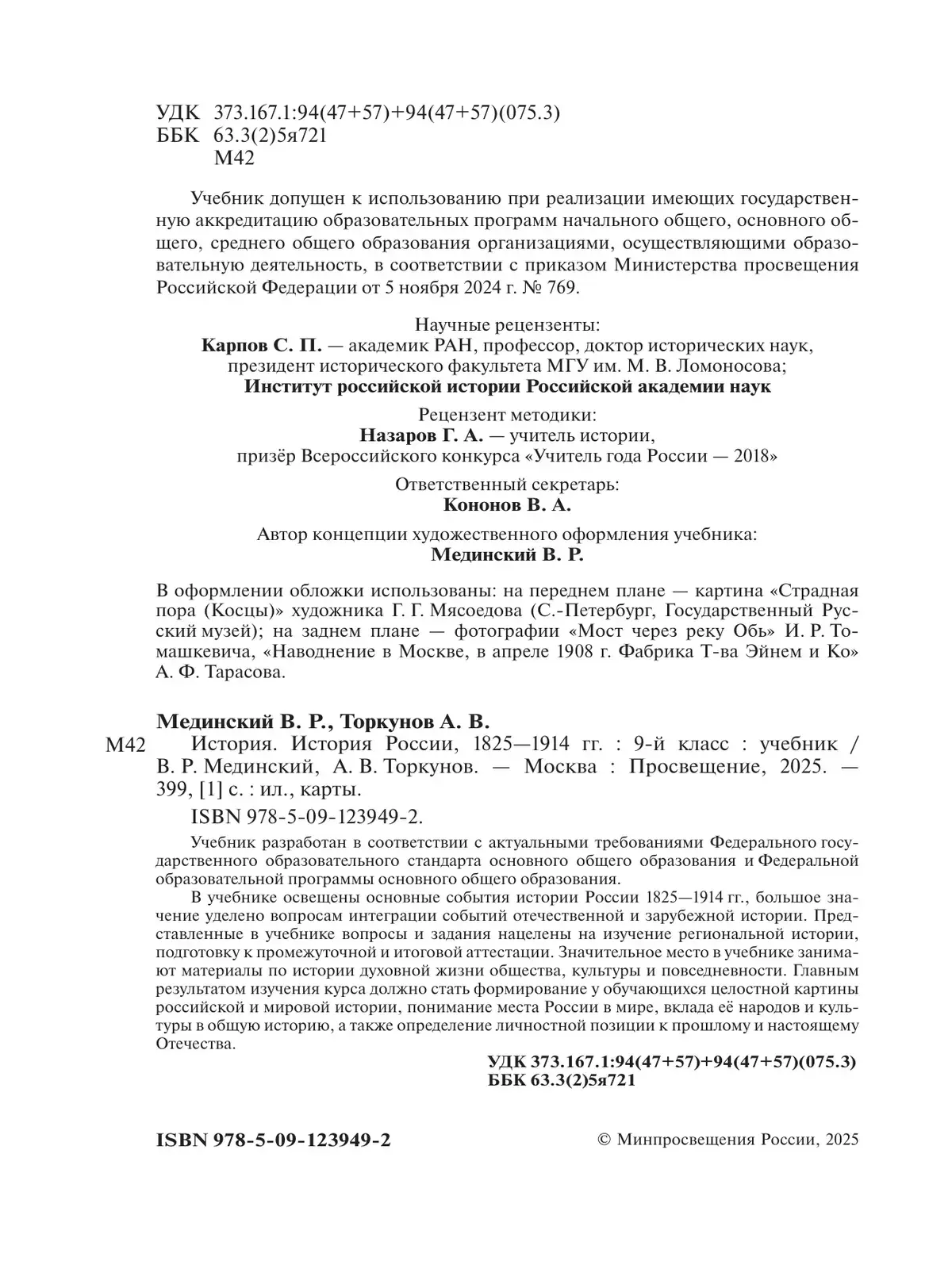 Учебник разработан в соответствии с актуальными требованиями Федерального государственного образовательного стандарта основного общего образования и Федеральной образовательной программы основного общего образования. В учебнике освещены основные события истории России 1825—1914 гг., большое значение уделено вопросам интеграции событий отечественной и зарубежной истории. Представленные в учебнике вопросы и задания нацелены на изучение региональной истории, подготовку к промежуточной и итоговой аттестации. Значительное место в учебнике занимают материалы по истории духовной жизни общества, культуры и повседневности. Главным результатом изучения курса должно стать формирование у обучающихся целостной картины российской и мировой истории, понимание места России в мире, вклада её народов и культуры в общую историю, а также определение личностной позиции к прошлому и настоящему Отечества.