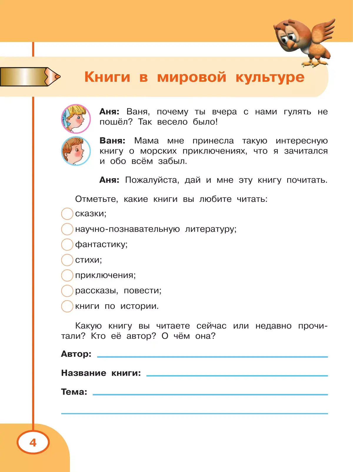 Творческая тетрадь разработана в соответствии с требованиями Федерального государственного образовательного стандарта начального общего образования. Материал тетради развивает у учащихся воображение и творческие способности, воспитывает доброе и внимательное отношение к окружающему миру. В тетради содержатся советы, которые подскажут школьникам, как написать рассказ, сценарий, отзыв на прочитанное произведение. Пособие предназначено для учащихся общеобразовательных организаций.