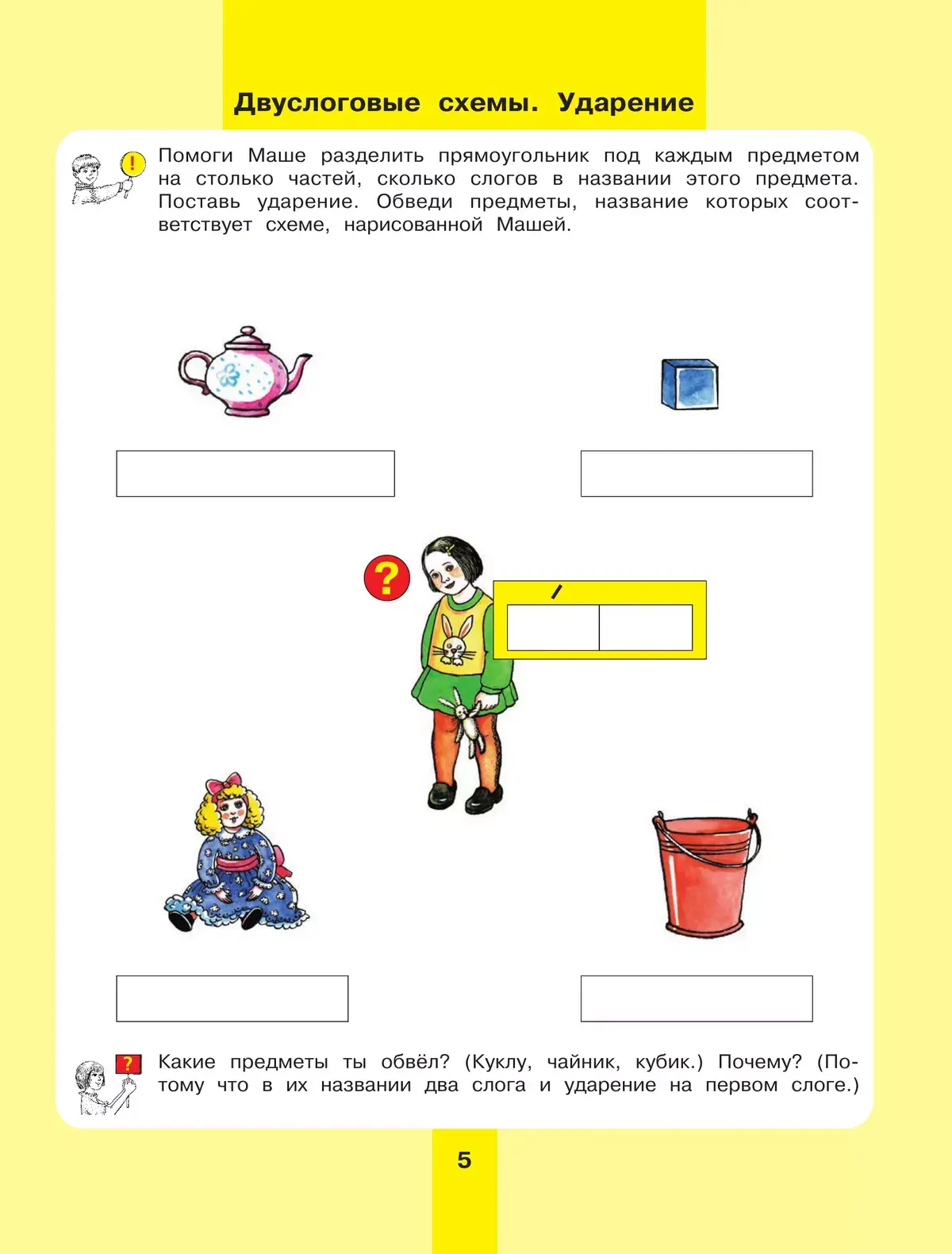Рабочая тетрадь «Предмет, слово, схема» входит в авторскую про- грамму «От звука к букве. Формирование звуковой аналитико-синтетической активности дошкольников как предпосылки обучения грамоте». Издание предназначено как для совместной работы взрослого и ребёнка, так и для самостоятельной работы ребёнка 5—7 лет, умеющего читать и хорошо ориентирующегося в звуко?буквенной системе родного языка. Игровые задания, предложенные в тетради, способствуют закре- плению умений ребёнка делить слова на слоги, определять ударение в словах, а также давать звуковую характеристику слов и составлять соответствующие схемы, то есть осуществлять простейшее моделирование. Выполнение заданий в тетради способствует развитию мышления, фонематического восприятия, графических навыков ребёнка. Рекомендуется педагогам, работающим в дошкольных образовательных организациях, специалистам групп кратковременного пребывания, логопедам, родителям для подготовки ребёнка к школе.