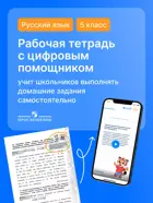 Рабочая тетрадь с цифровым помощником является частью учебно-методического комплекта для 5 класса авторов Т. А. Ладыженской, М. Т. Баранова, Л. А. Тростенцовой и др. Тетрадь включает разнообразные упражнения базового и повышенного уровня сложности, а интересные творческие задания помогут школьникам лучше усвоить правила, повысить свою грамотность, научиться писать изложения и отработать приёмы работы с текстом. На страницах тетради живёт дружелюбный и внимательный цифровой помощник — тигр Тёмка. Он поможет научиться выполнять домашние задания, разобраться в темах и подготовиться к урокам. Сканируйте QR-коды — и попадёте на страницы с разборами заданий, полезными подсказками, теорией и дополнительными материалами.