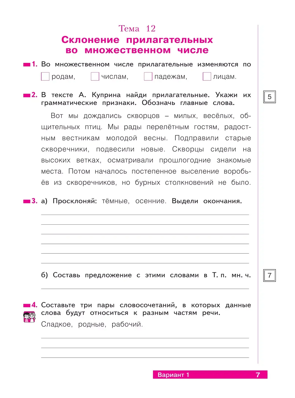 Тетрадь проверочных работ позволяет организовать тематический контроль на уроках русского языка в первом полугодии четвёртого класса. Вместе с тем важное место в ней уделено развитию самооценки обучающихся, выработке умения самостоятельно контролировать уровень своих знаний. Система оценивания, представленная в тетради, даёт возможность учителю и ученику определить проблемные области изученной темы и виды заданий, вызывающих наибольшие затруднения. Тетрадь может использоваться при работе с любыми учебно-методическими комплектами.
