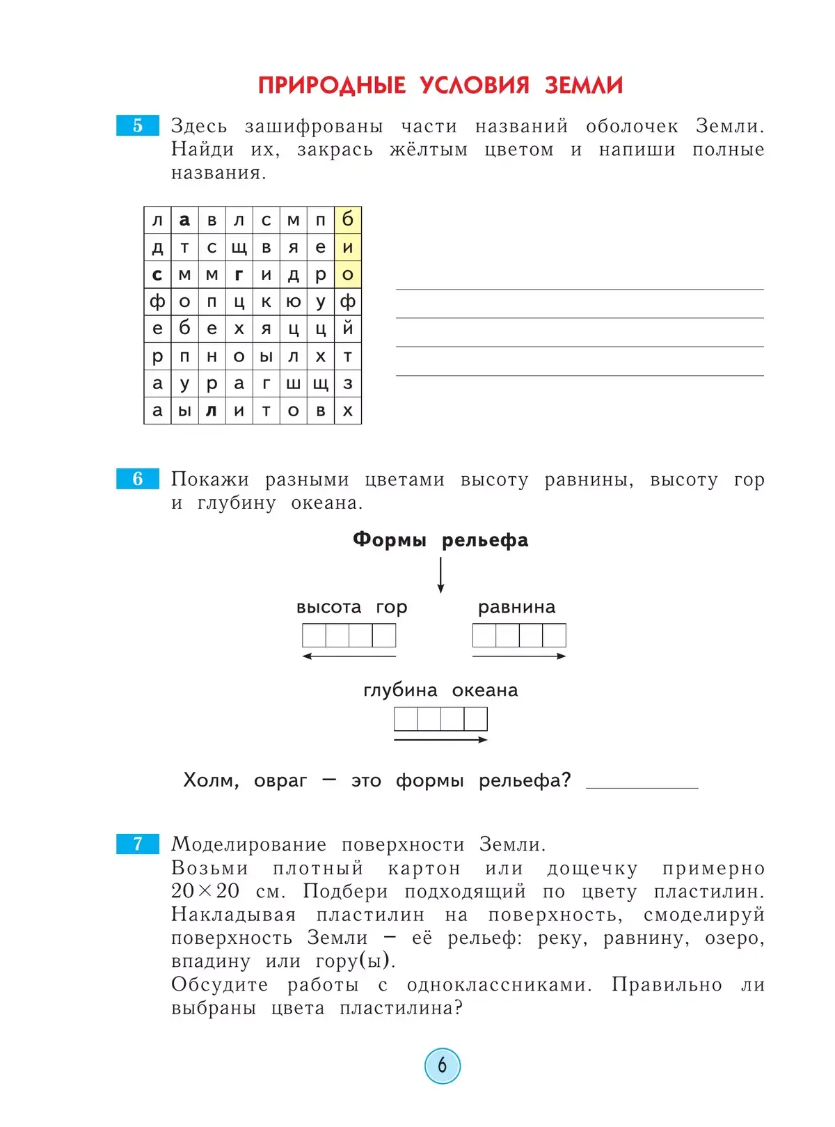 Рабочая тетрадь входит в учебно-методический комплект «Окружающий мир» (3 класс) и предназначена для самостоятельной работы обучающихся. Предложенные в ней задания расширяют знания учеников об окружающем мире и придают им действенный характер, создавая условия для общего развития детей. В тетради помещены разрезные карточки, которые используются при изучении соответствующих тем учебного пособия . Они вносят разнообразие в процесс усвоения ребенком учебного материала, являются дополнительным фактором мотивации и рационализации учебной деятельности.