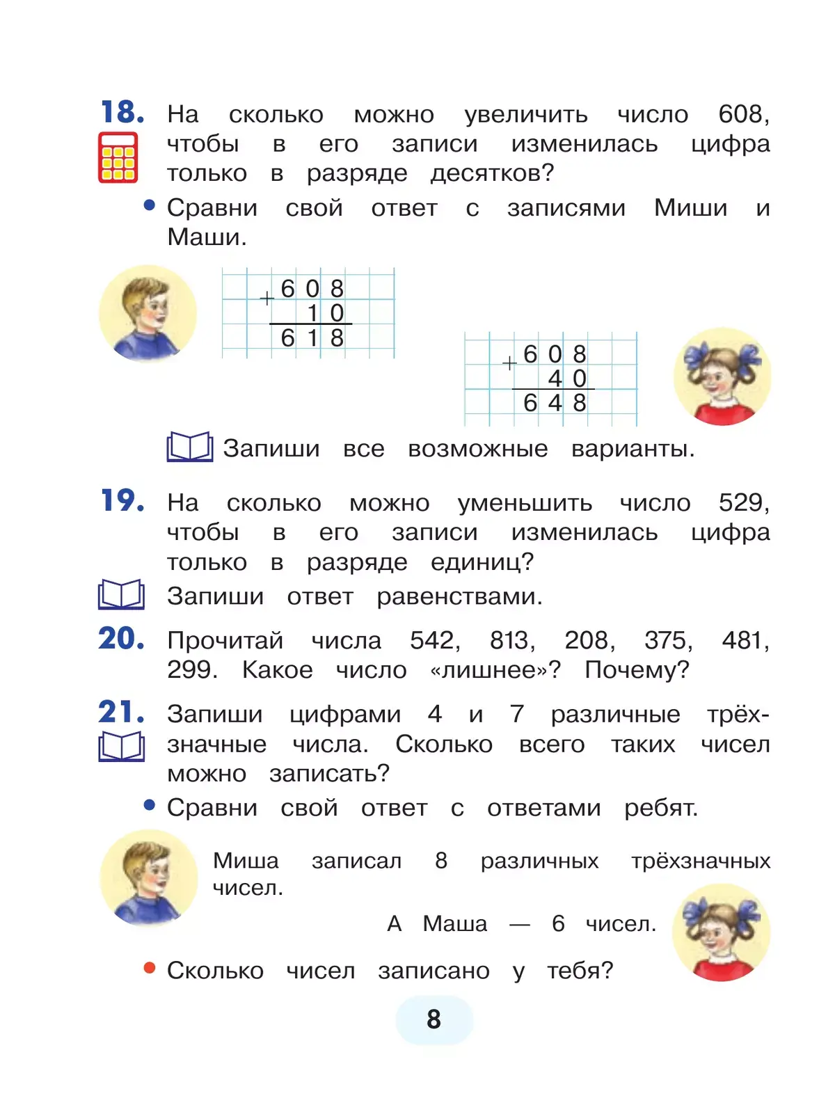 Содержание учебного материала в учебном пособии создаёт дидактические условия для качественной предметной подготовки всех учащихся, необходимой для продолжения математического образования в основной школе, а также для овладения учащимися универсальными учебными действиями (личностными, познавательными, регулятивными, коммуникативными) в процессе усвоения предметного содержания. Этому способствуют разнообразные методические приёмы организации учебной деятельности школьников, система учебных заданий, направленных на выполнение учениками различных видов действий.