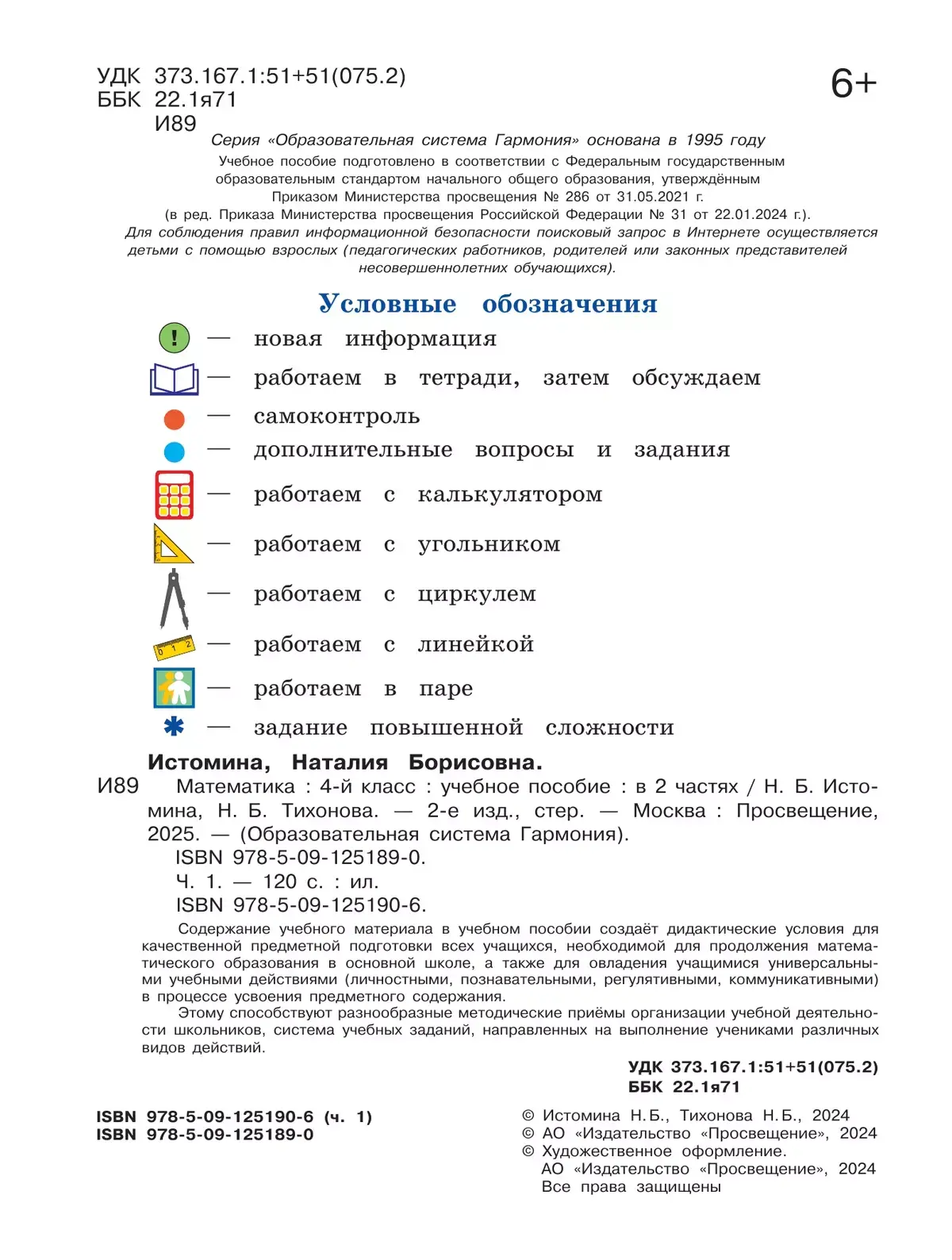 Истомина Н.Б. Математика. 4 класс. Учебное пособие. Часть 1. (Просвещение)