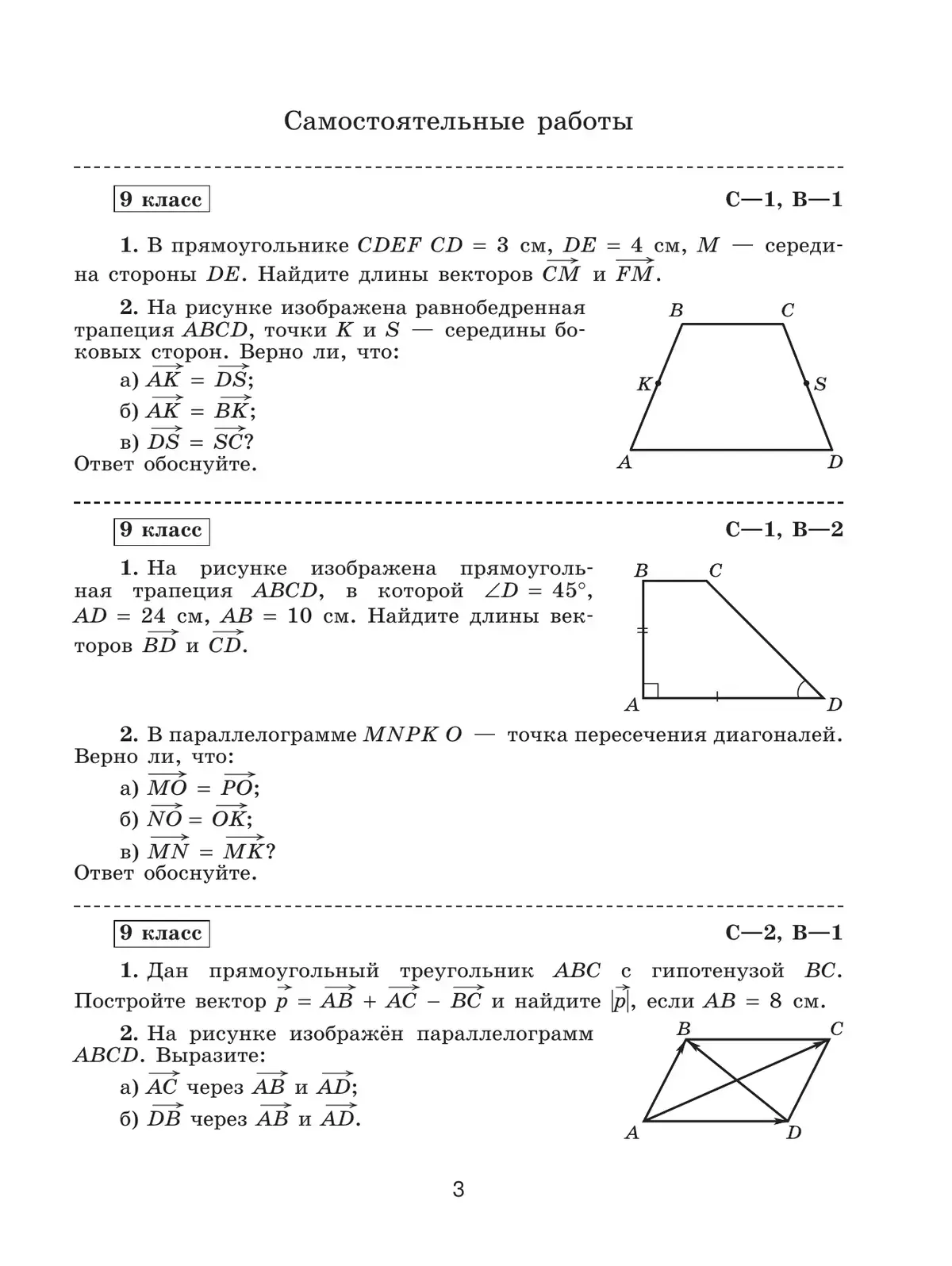 Учебное пособие содержит самостоятельные и контрольные работы, а также карточки к итоговым зачётам по курсу геометрии 9 класса. Пособие адресовано школьникам, их родителям, учителям математики. Оно ориентировано на учебник «Математика. Геометрия. 7—9 классы» авторов Л. С. Атанасяна и др., вошедший в Федеральный перечень учебников в соответствии с Приказом Министерства просвещения Российской Федерации № 858 от 21.09.2022 г.